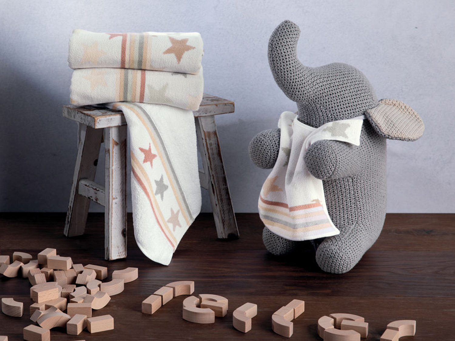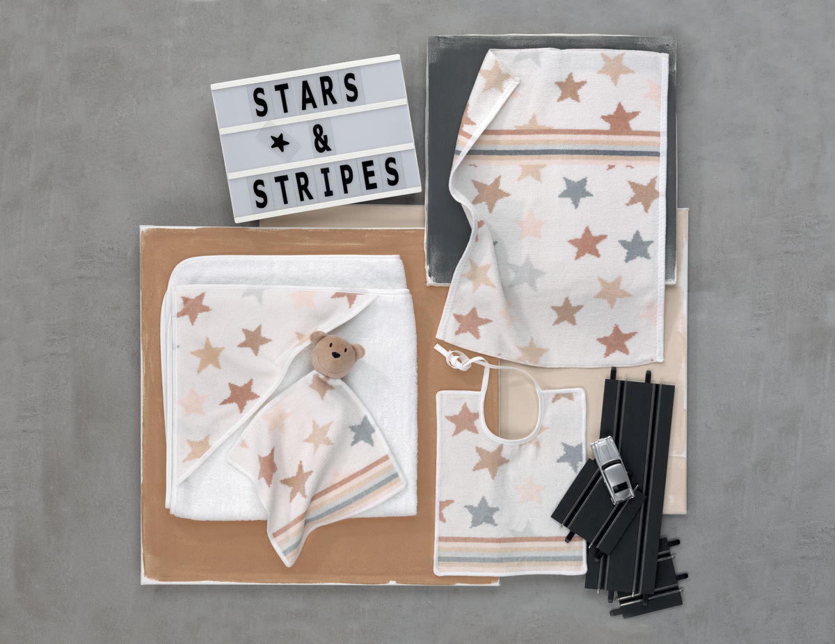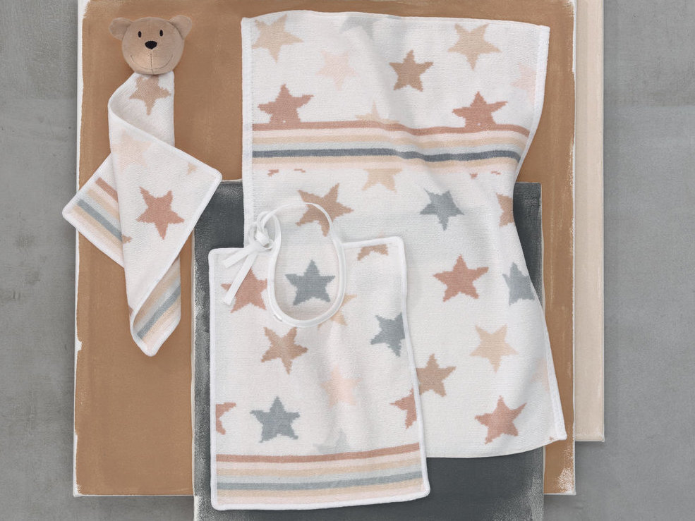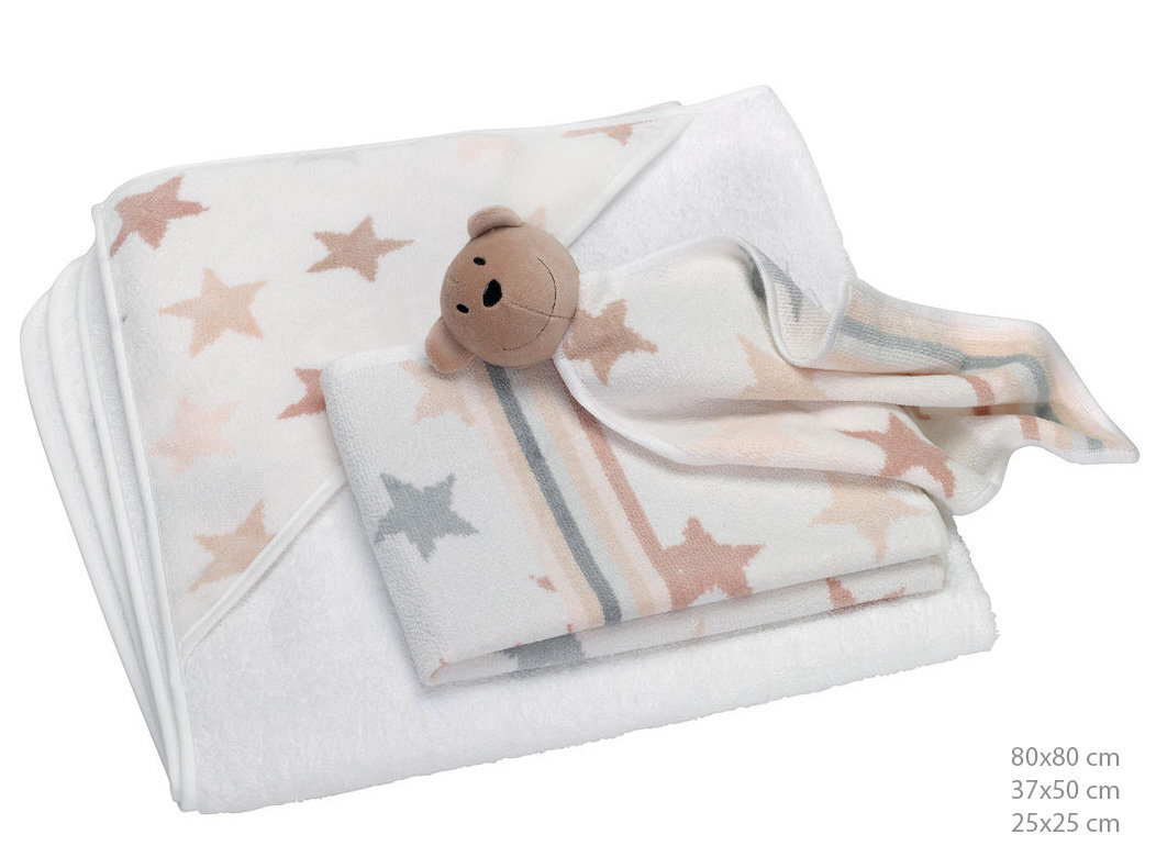 Уход: стирка при 60 °C (для салфетки с мишкой при 40 °C), машинная сушка