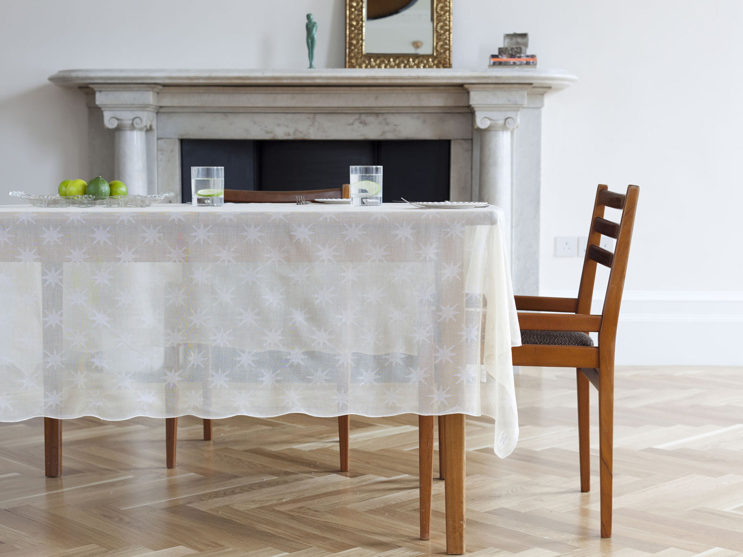 Star Lurex- звездная скатерть из настоящего шотландского кружева английской марки MYB Textiles. Тончайшая работа английских мастеров. Состав ткани -100% хлопок. Кружевные полотна и тюли MYB Textiles ценятся во всем мире за свое высочайшее качество и мастерство. Такая скатерть станет настоящим украшением дома.