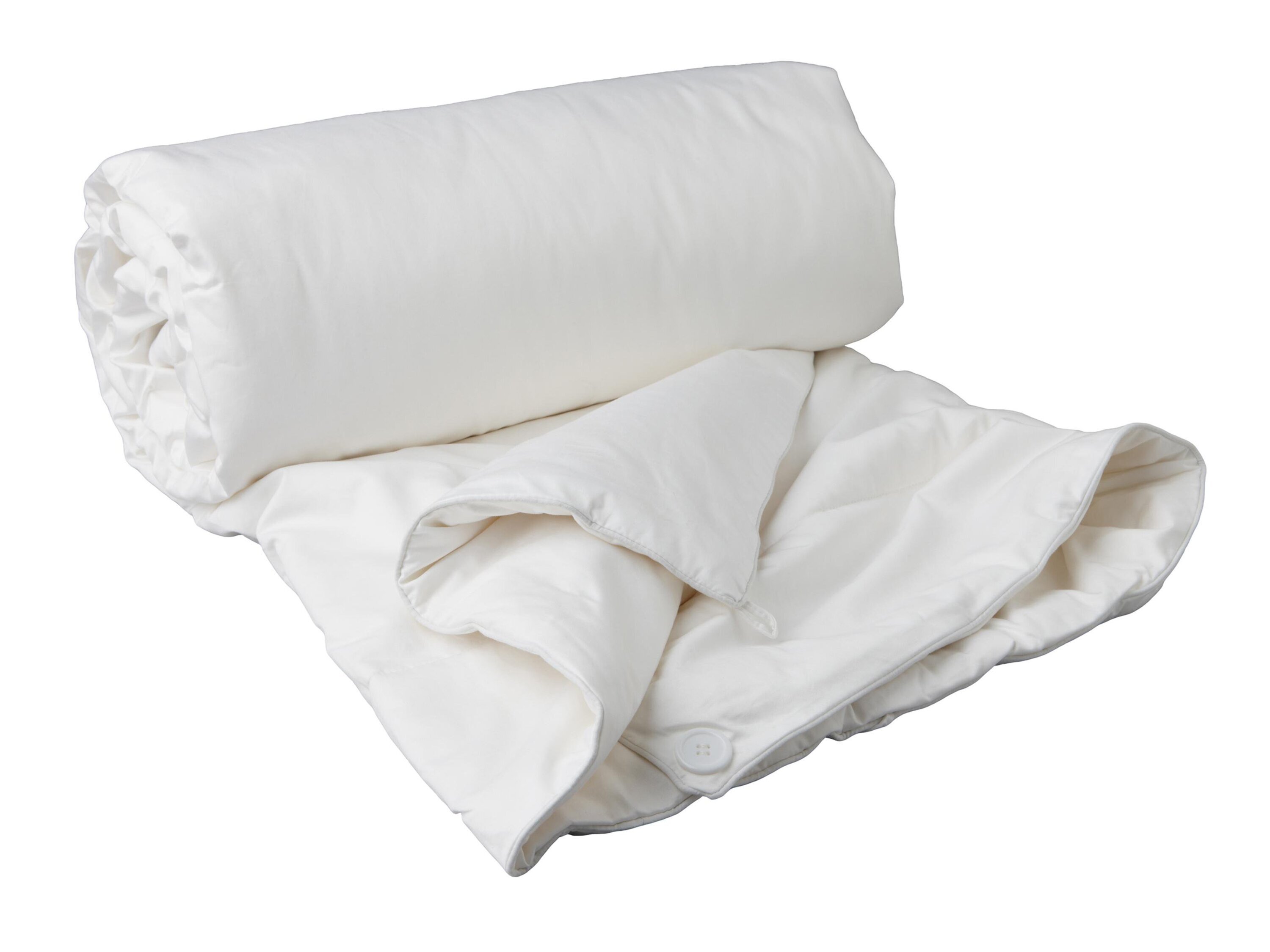 Одеяло, наполненное 100% шелком шелковицы, тонкое и легкое. Наполнитель из шелковой нити подстраивается под тело человека и температуру в помещении и мягко укутывая. Оно также рекомендуется для аллергиков, поскольку оно устойчиво к пылевым клещам и гипоаллергенно.