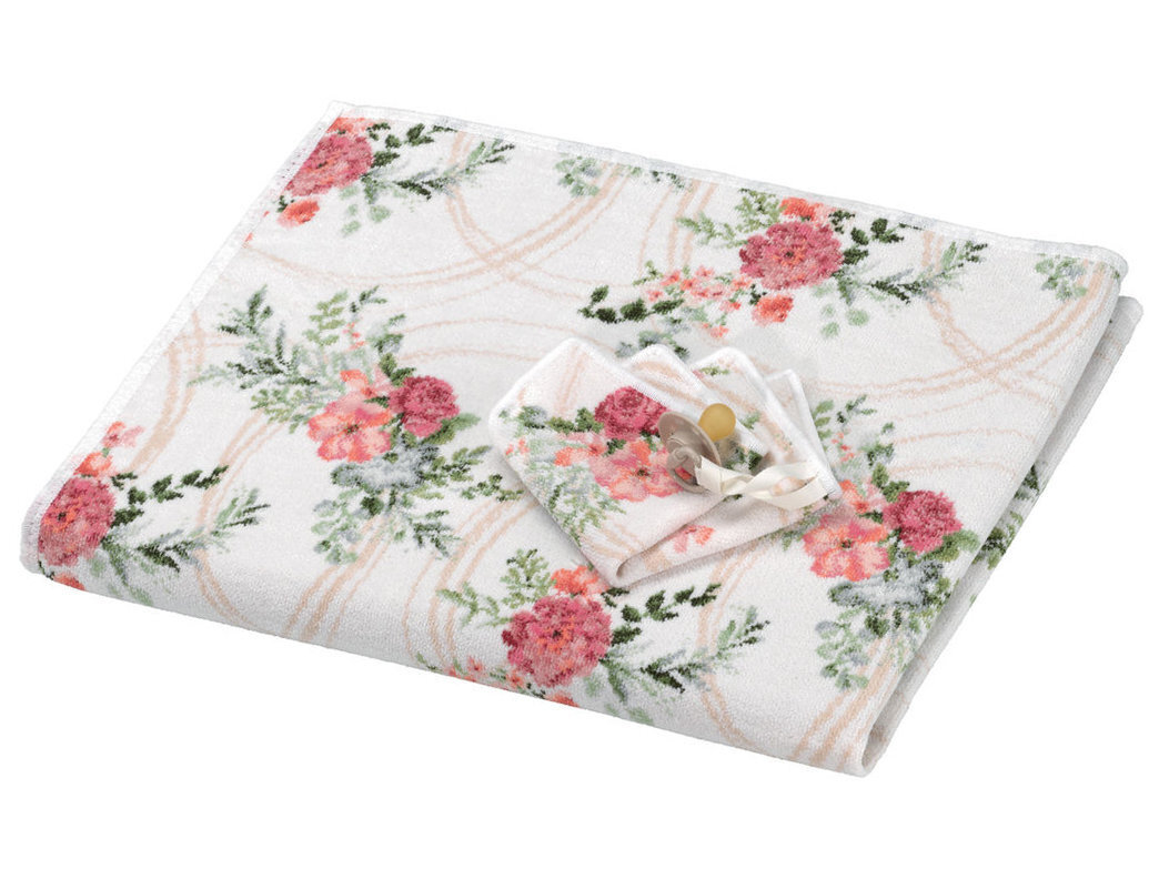 - Коллекция состоит из полотенец, нагрудника, одеяла для коляски / пледа 75х100 см, косметичек