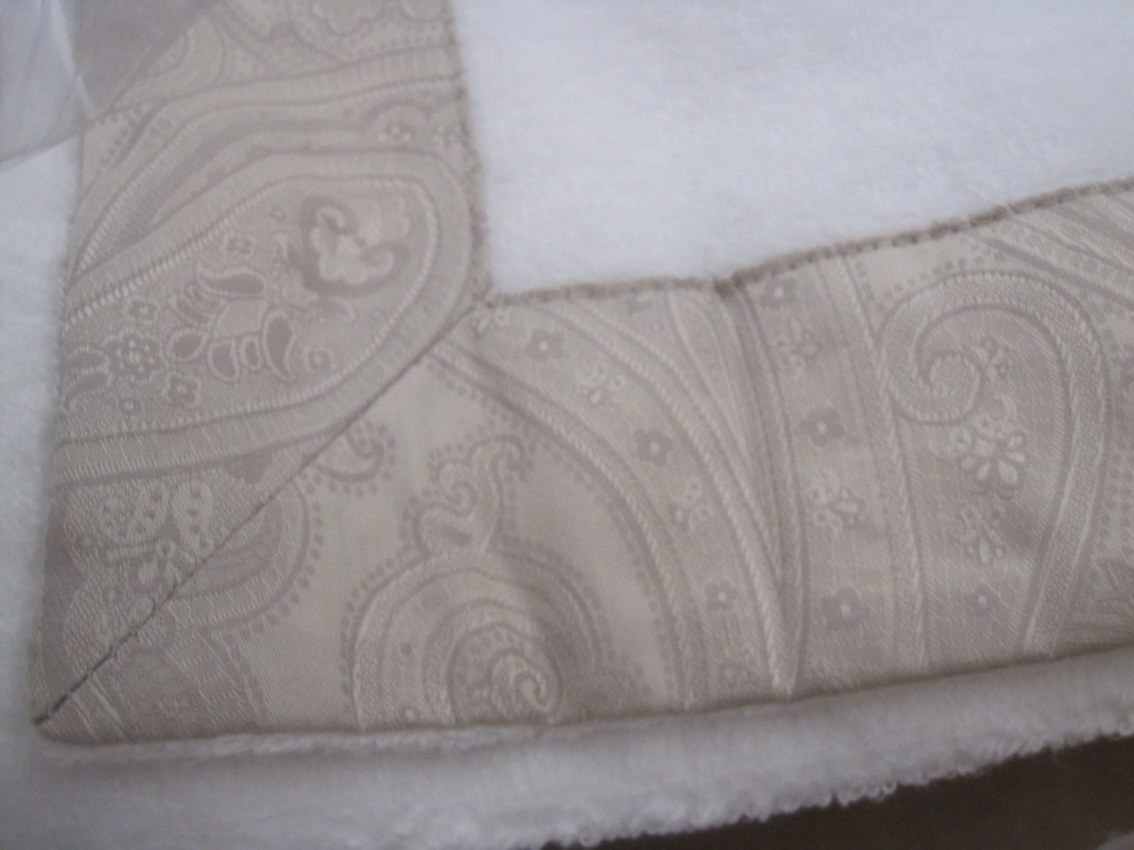 Материал: 100% хлопок ( белая махровая ткань Dreamflor, сатиновая окантовка)