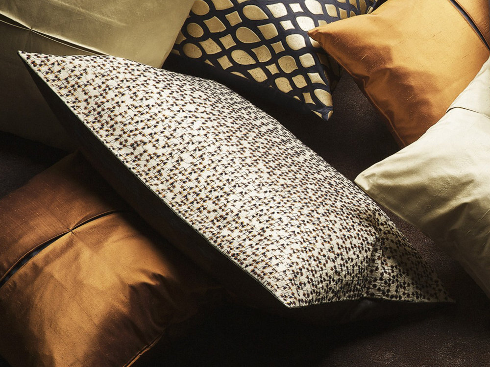 "Star" является большой с глянцевым метализированным эффектом наволочкой для декоративной подушки сделаной c одной стороны из чистого шелка шоколадного тона с другой стороны из 46% хлопка и 42% PES и12% блестки!