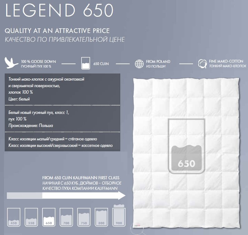 - 650 куб.дюймов пуха
