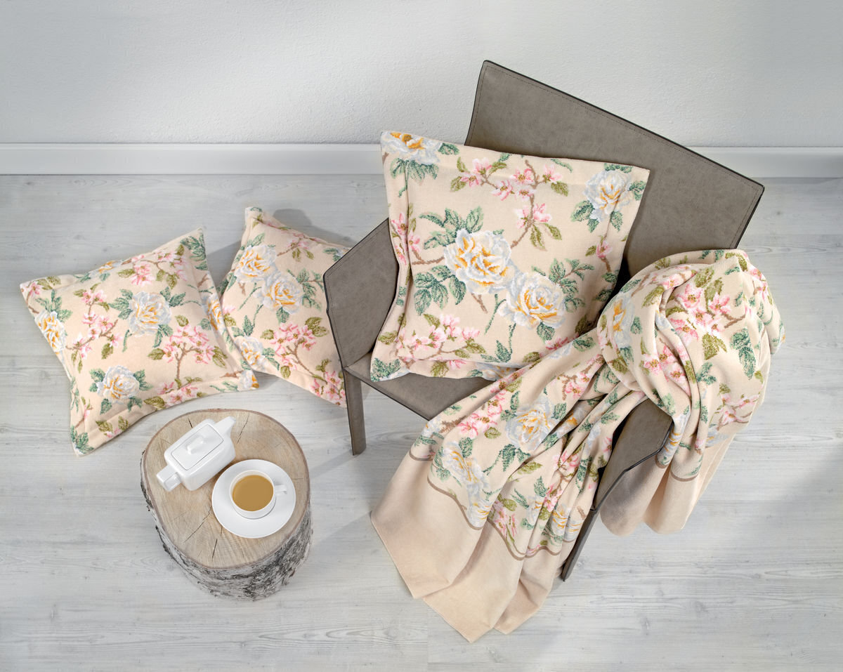 Шенилл -это уникальная плюшевая ткань из чистого хлопка. Специальная техника плетения допускает двусторонний рисунок. Его легко узнать по характерной выпуклой нитке, которая контуром напоминает движение гусеницы (по-французски гусеница — chenille). Из-за ворсистой структуры ткани создается приятный эффект игры цвета.