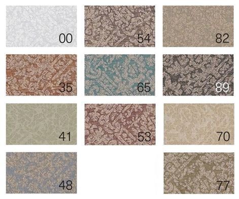 Цвет: 00 (белый), в сочетании с натуральным тоном льна: 35 (красный, красно-коричневый), 41 (бледно-бирюзовый), 48 (голубой), 53 (цикламен / розово-фиолетовый), 54 (сиреневый), 65 (бирюзовый), 70 (льняной), 77 (коричневый), 82 (светло-серый), 89 (темно-серый, антрацит)