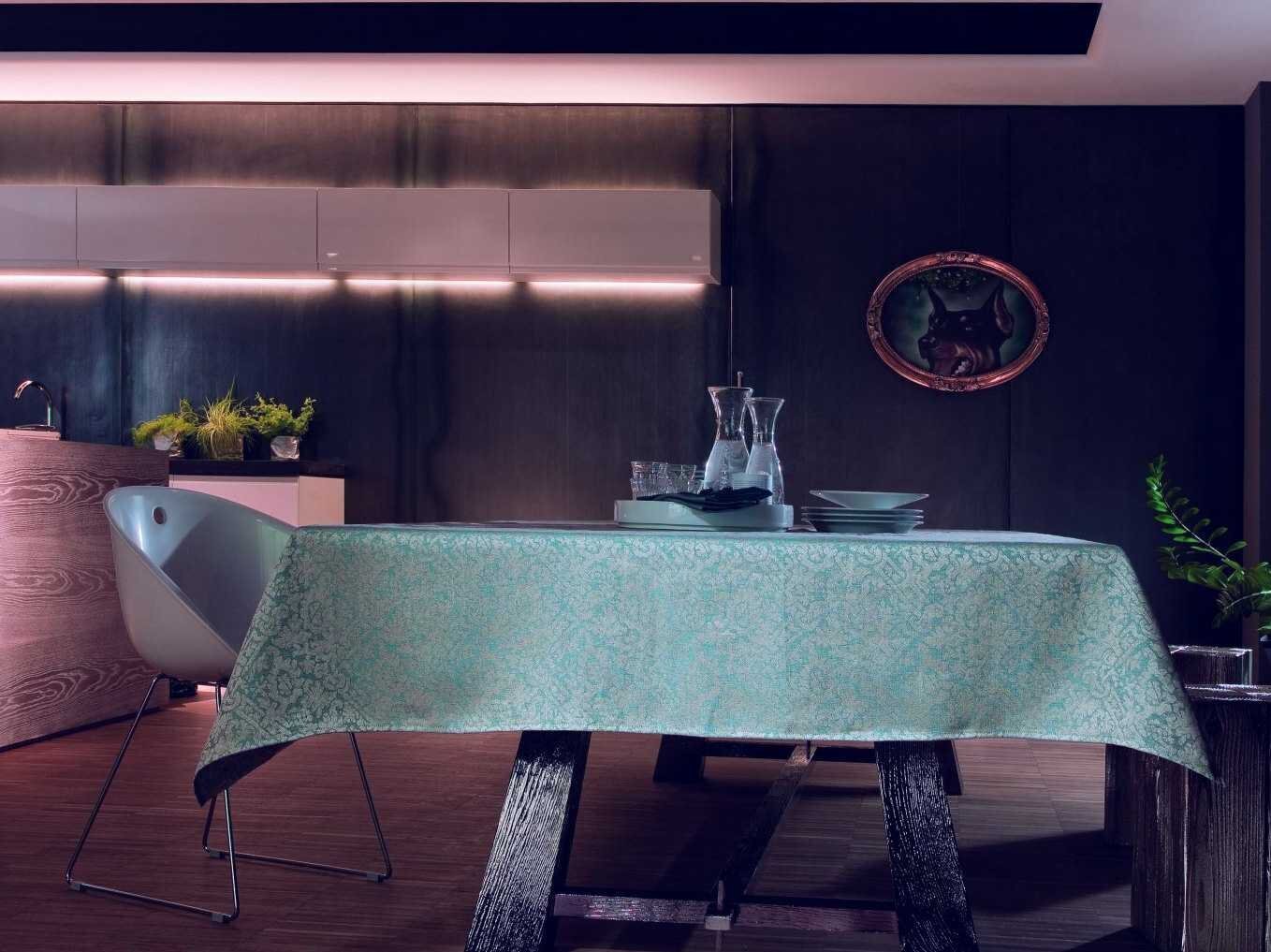 Легкий жаккардовый рисунок на слегка пестром фоне придает вашему столу празднично элегантный штрих.