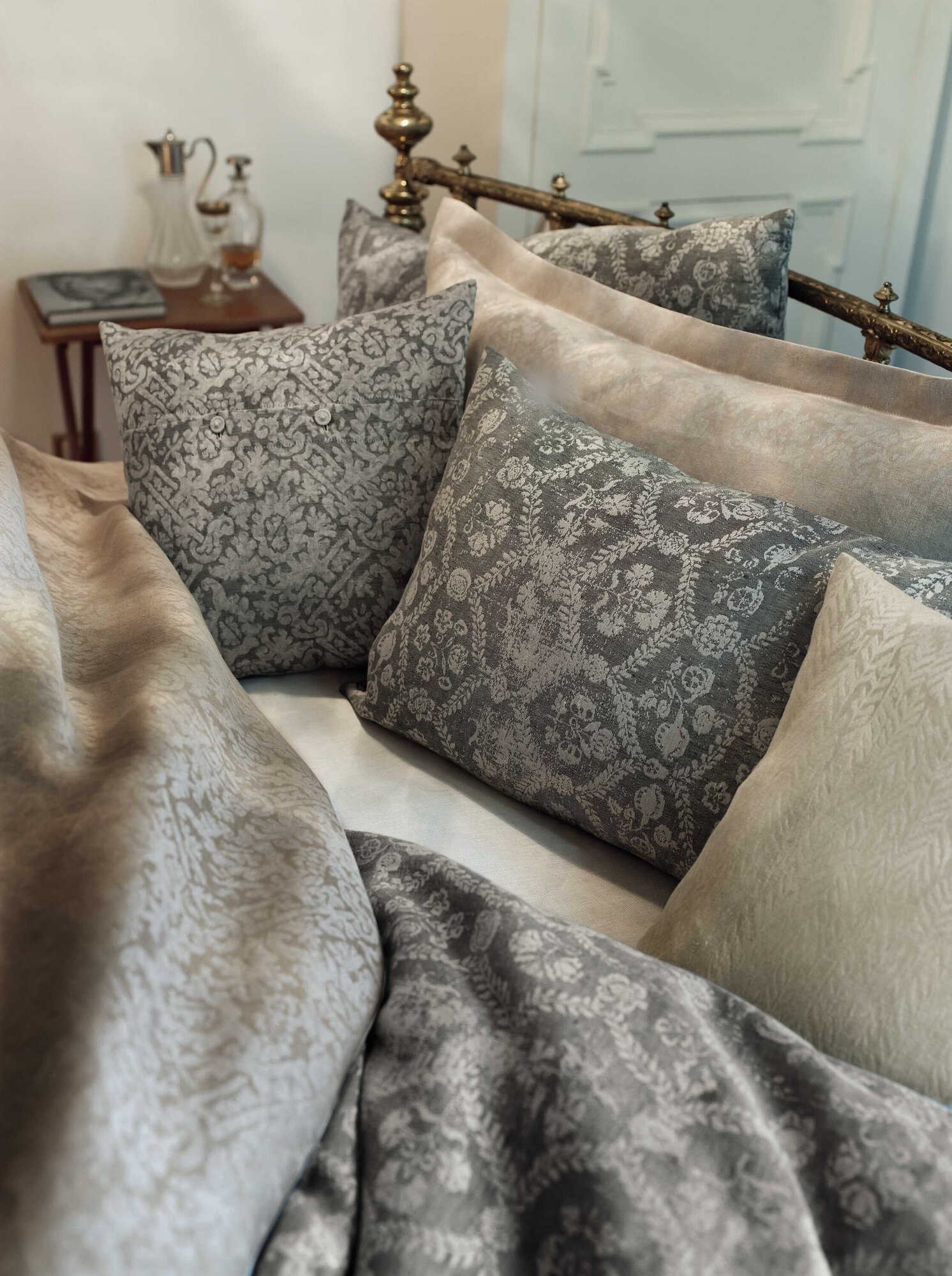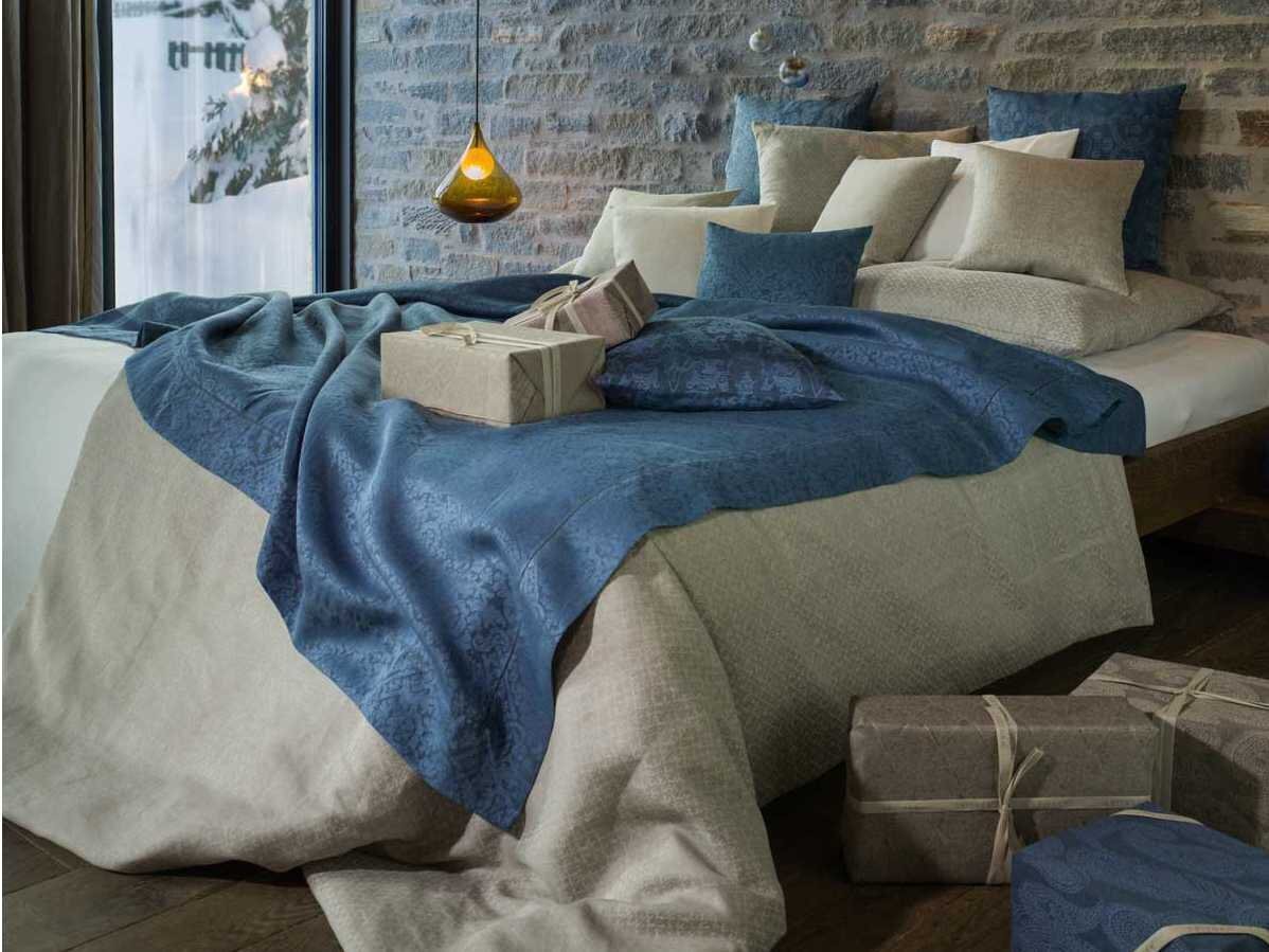 Легкий жаккардовый рисунок на слегка пестром фоне придаст вашей спальне празднично элегантный штрих с особым шармом. Натуральный изысканный лен – это необычайно редкая ткань, которую производят исключительно лучшие представители льняной индустрии всего мира. Игра оттенков жаккардового переплетения, двухсторонняя композиция, которая сочетает в себе комбинации различных переплетений.