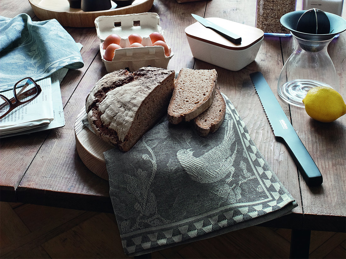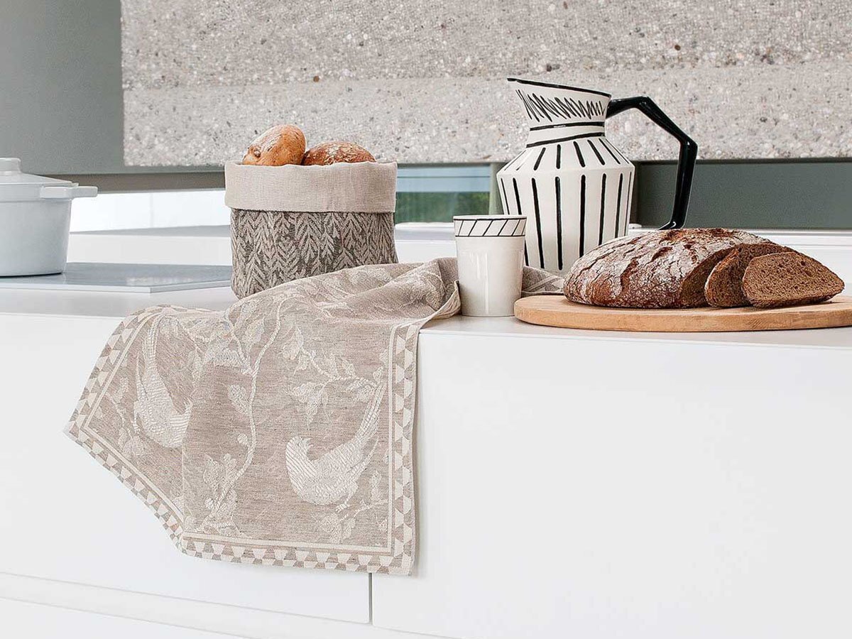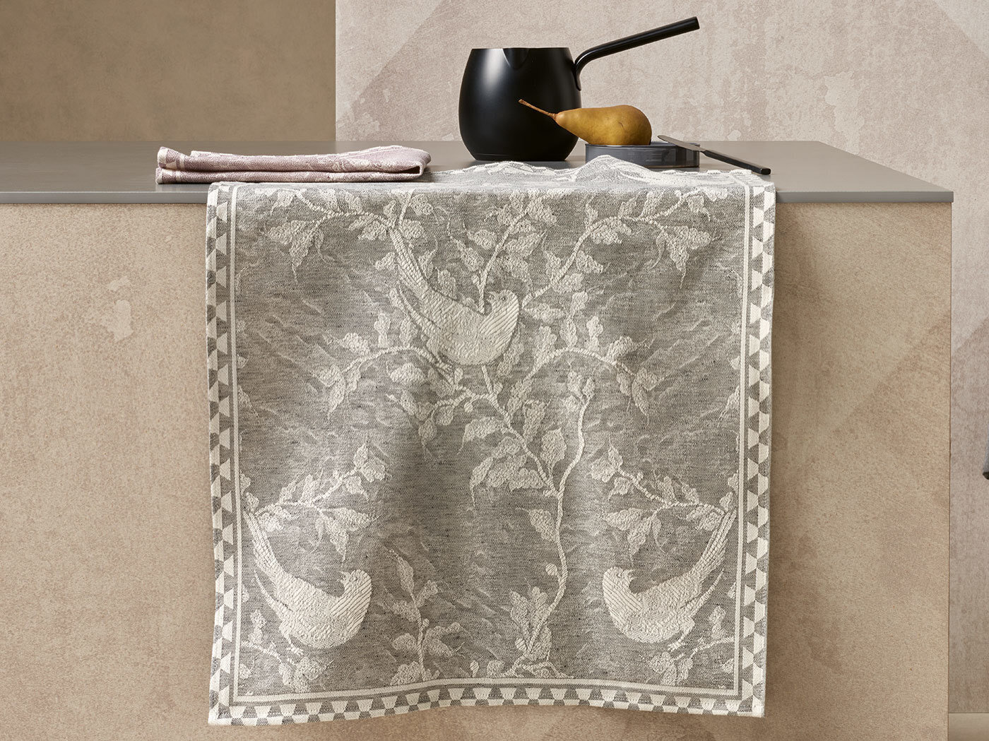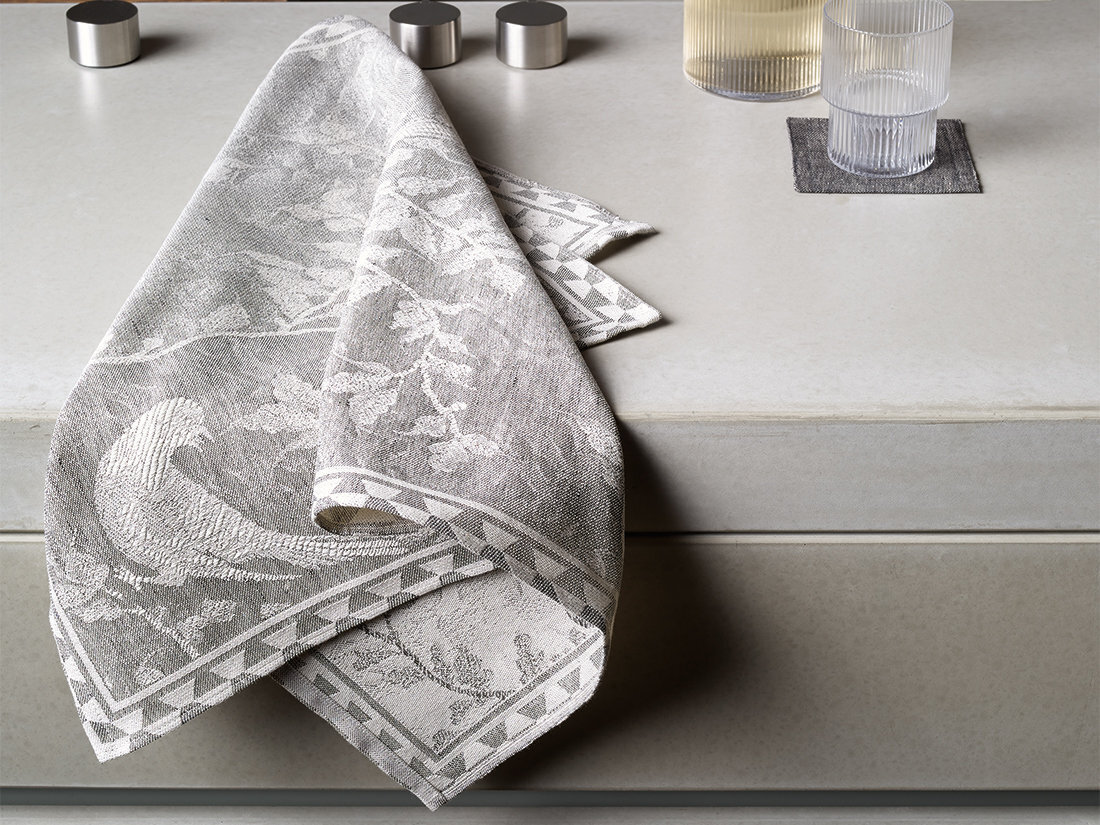 Жаккардовое кухонное полотенце «VOGEL» демонстрирует живой птичий мотив, что делает изделие чем-то особенным. Мелкие детали и очаровательная рамка превращают ткань 50 х 70 см в декоративный элемент вашей кухни. Он состоит из 50% льна и 50% хлопка - из пряжи высшего качества с тончайшими нюансами.
