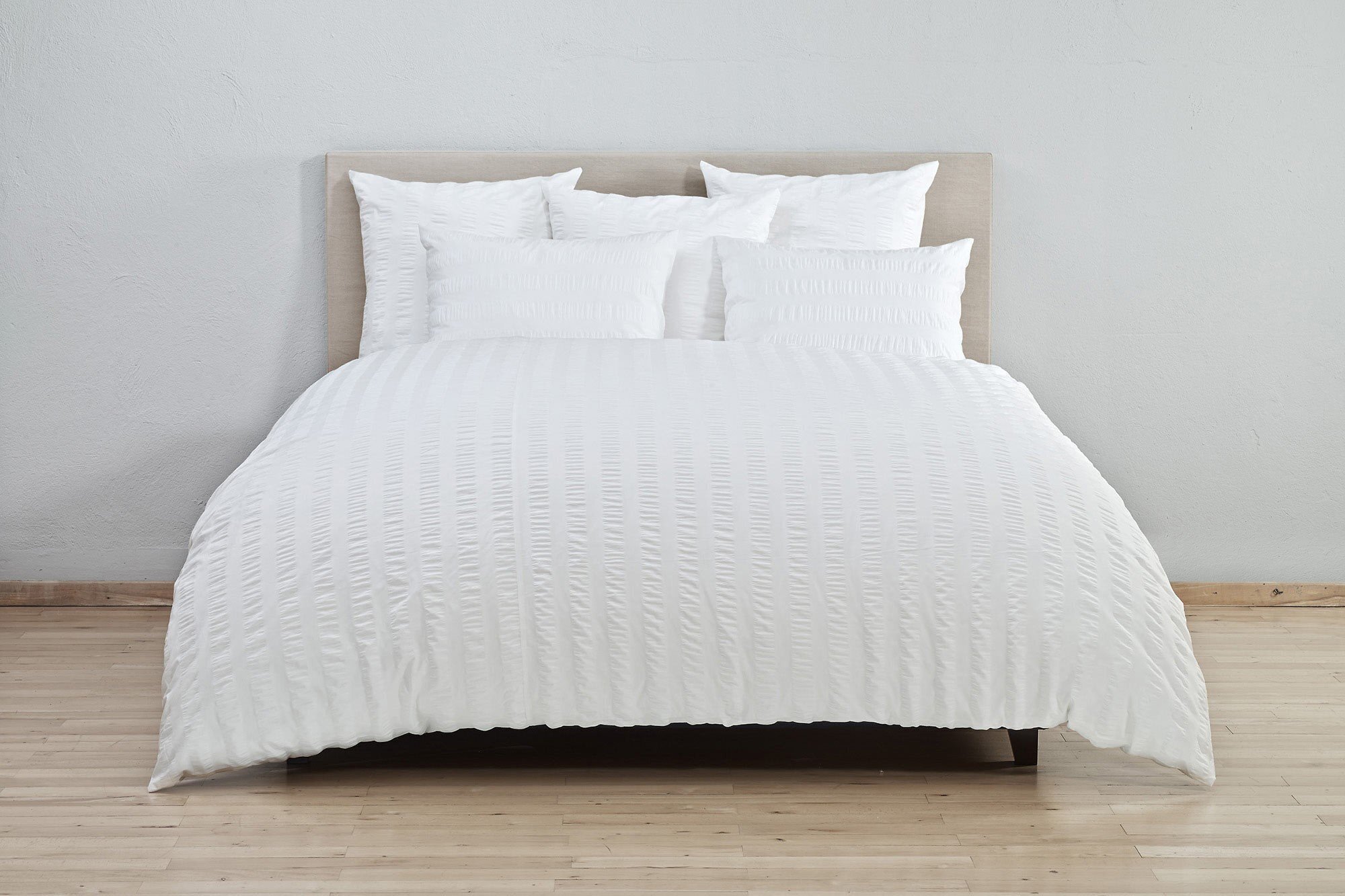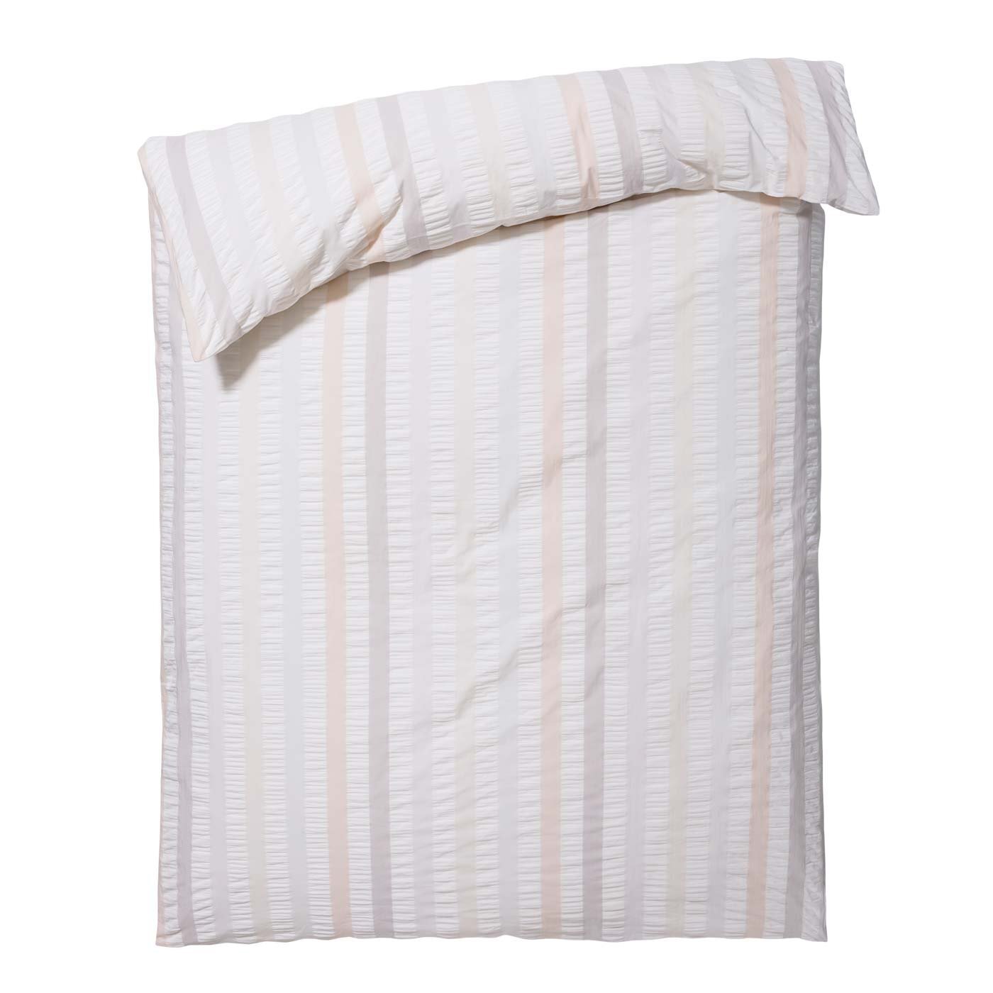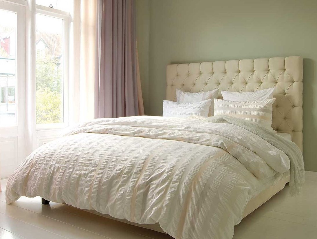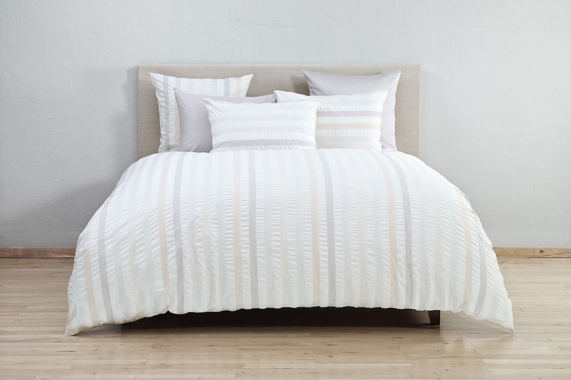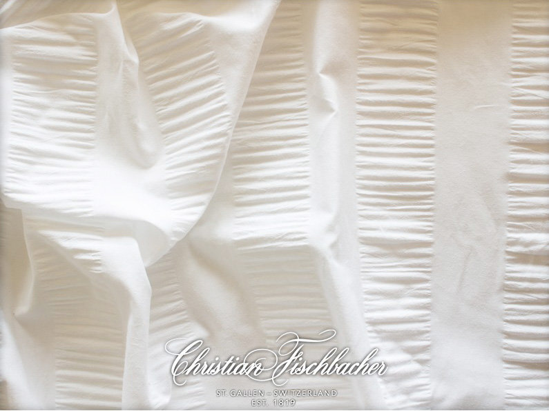 Гофрированного продольные полосы создаются во время ткачества за счет различного напряжения нитей основы. Они сосдают не только очарование белья, но и придают легкость в уходе, освобождая от глажения.