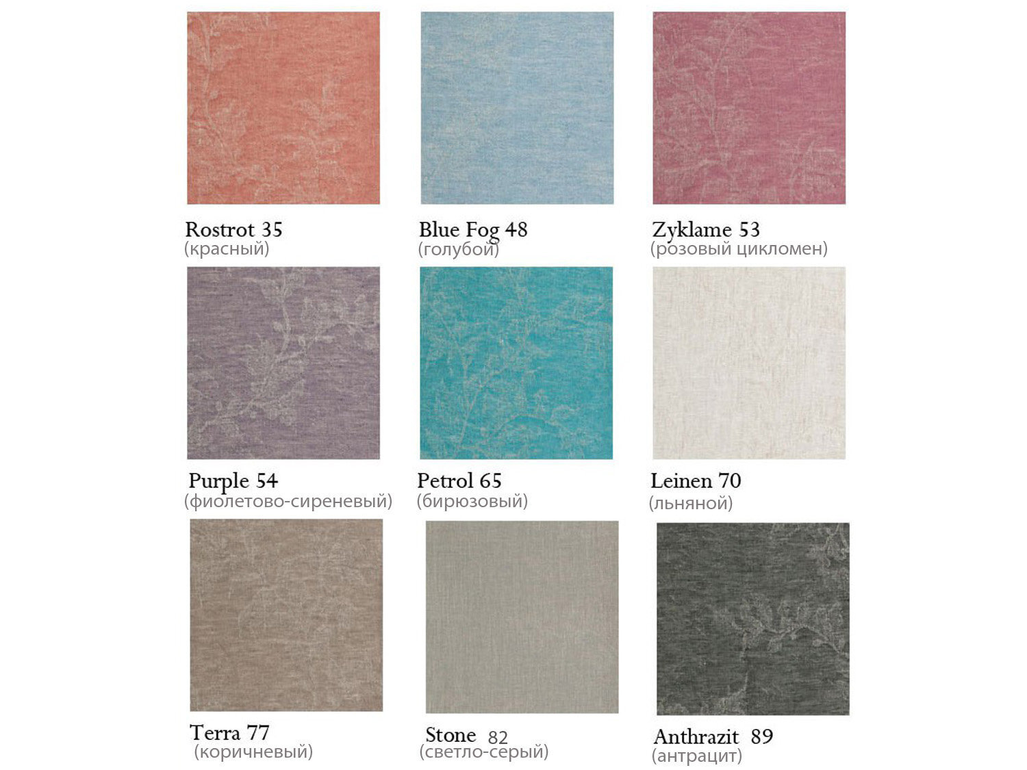 Цвет: 35 (красный, красно-коричневый), 41 (бледно-бирюзовый), 48 (голубой), 53 (розовый цикламен), 54 (фиолетово-сиреневый), 65 (бирюзовый), 77 (коричневый), 82 (светло-серый), 89 (темно-серый, антрацит)